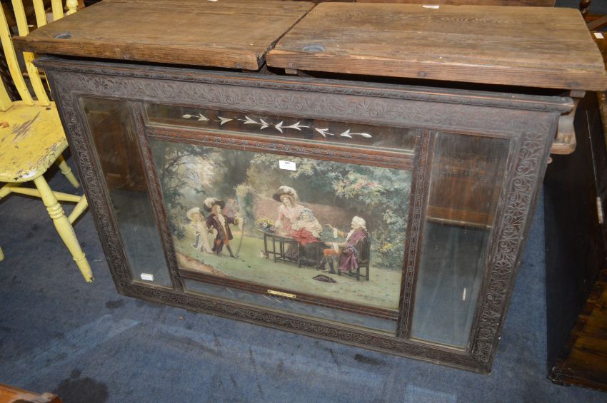 Carved Oak Framed Over Mantel Print with Mirrored Panels - A Visit to Grandpa