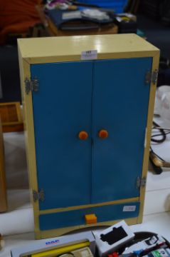 Child's Toy Cupboard and Contents of Dolls Clothing