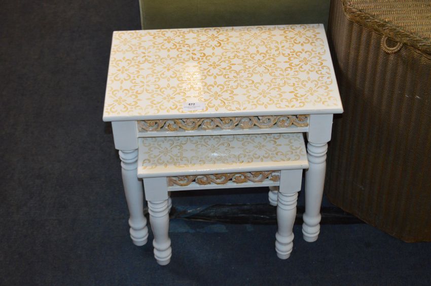 White & Gilt Painted Nest of Two Tables