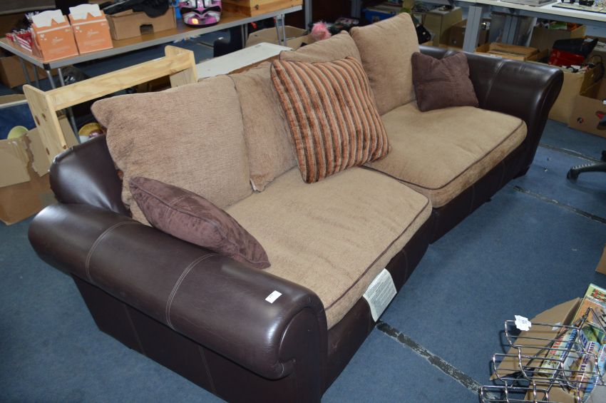 Brown Leather & Fabric Angle Back Two Seat Sofa