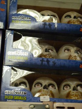 Three Sets of Three Halloween LED Pathway Marker Illuminated Skulls