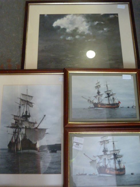 Lancaster Bomber Print and Three Framed Photos of Old Naval Ships