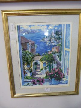 Gilt Framed Print - Mediterranean Coastal Scene