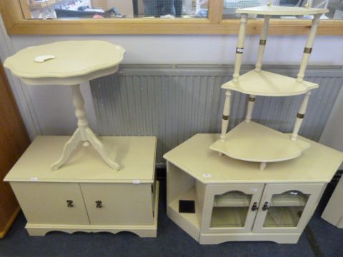 Cream TV Unit and Three Teir Corner Shelf, Side Table and Cabinet