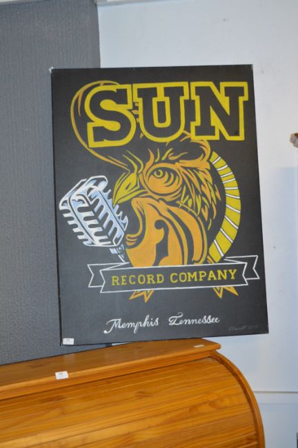Large Painting on Canvas - Sun Record Company signed C. Barratt