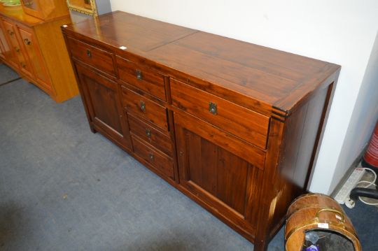 Indian Teak Sideboard with Six Doors and Two Drawers