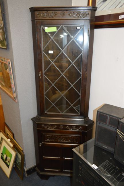 Dark Oak Lead Glazed Corner Display Cabinet