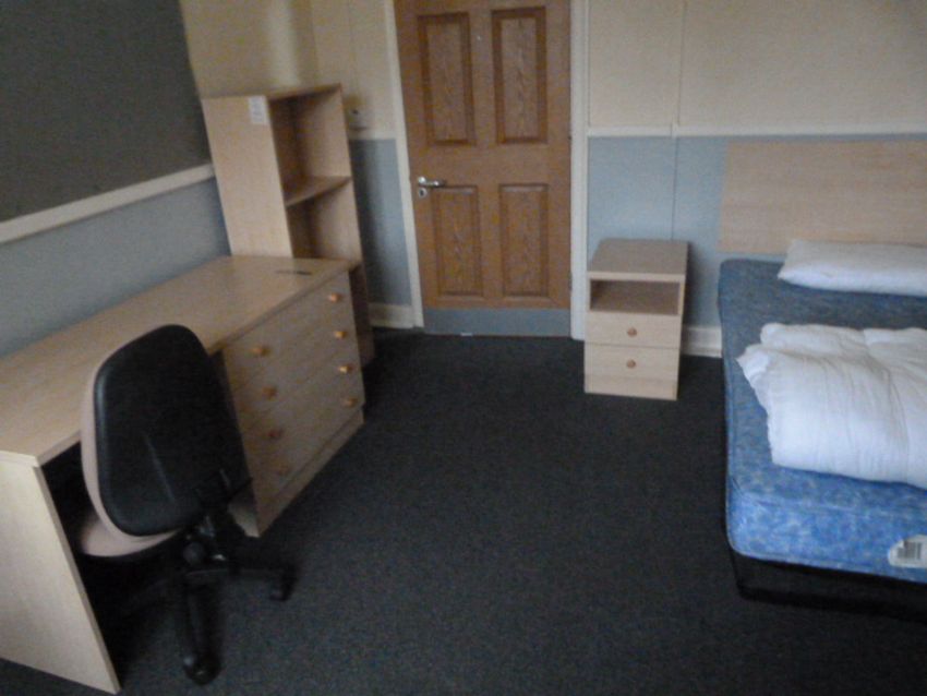 *Contents of Room 69; Single Bed with Mattress, Bedside Cabinet, Vanity Unit with Basin, Bookshelf and a Dressing Table