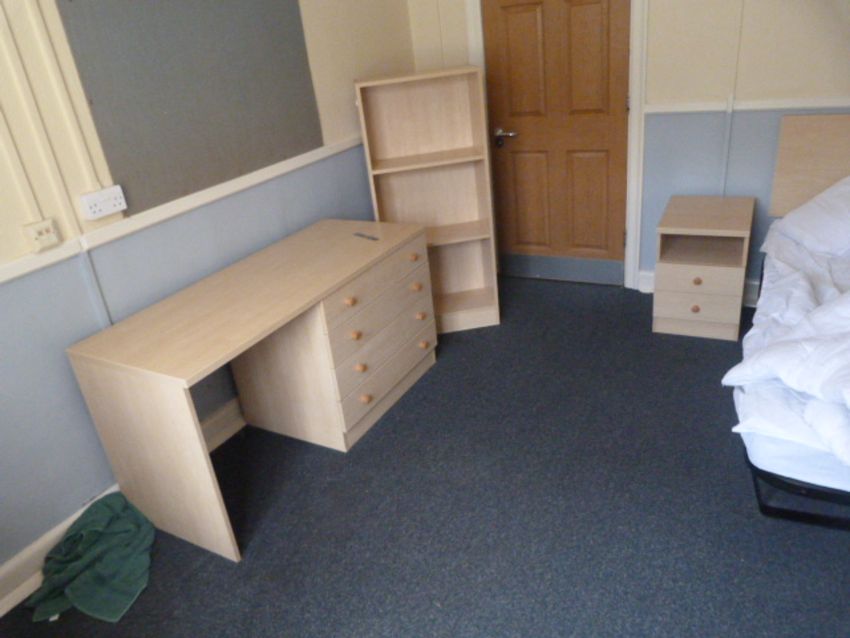 *The Contents of Room 52; Single Bed with Mattress, Bedside Cabinet, Vanity Unit with Basin, Bookshelf and a Dressing Table