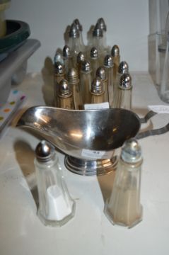 Stainless Steel Sauce Boat and a Quantity of Salt & Pepper Shakers