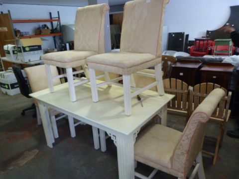 Cream Coloured Dining Table with Six Upholstered Chairs