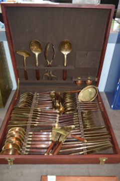 Wood Cased Indian Brass and Teak Handled Cutlery Set