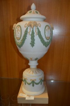 Italian Pottery Lidded Urn with Embossed Rams Head Decoration