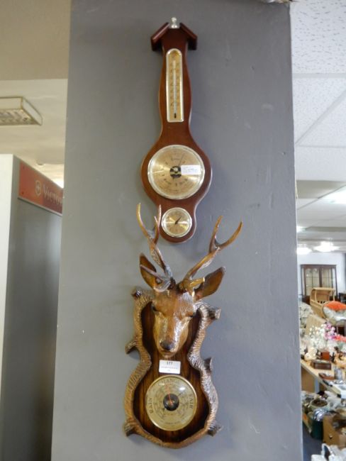 Two Wall Mounted Barometers (One with Plastic Deer Head)