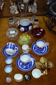 Glassware and Pottery, Vases, Candlesticks, Blue & White Tea Cups, etc.