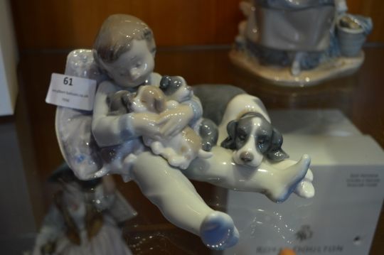 Lladro Figurine - Young Boy with Dog & Puppies