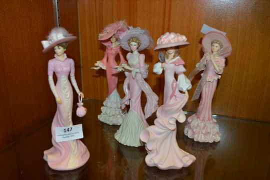 Collection of Five Thomas Kinkade China Figures - Reflections in Pink