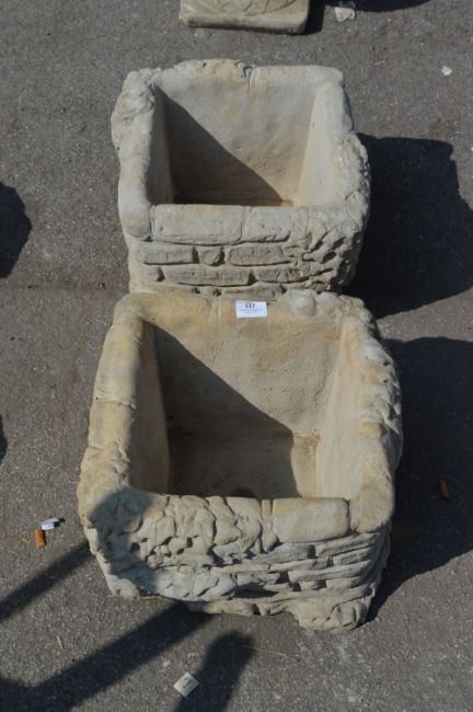 Pair of Reconstituted Limestone Planter with Brick & Ivy Decoration