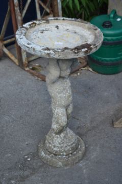 Concrete Birdbath with Cherub Support