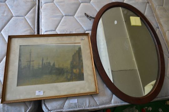 Oval Framed Wall Mirror and a Print of Princess Dock, Hull