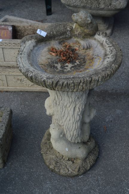 Concrete Birdbath with Otter Family Decoration