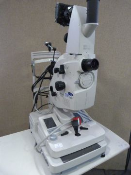 *Topcon TRC-50DX Retinal Camera Type:IA (Mfd - 2007) with, Nikon D7000 Digital Camera on Topcon ATE-600 Ophthalmic Motorised Table (Powers Up)