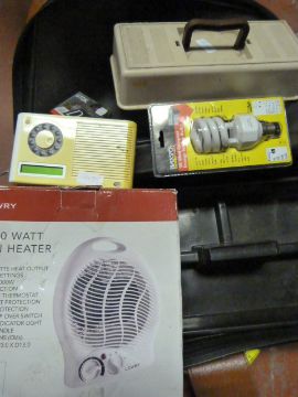 Suitcase Containing a Fan Heater, Shoe Shine Box, etc.