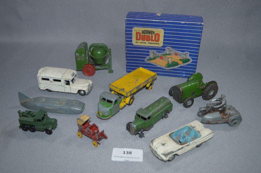 Ten Minic, Corgi and Dinky Play-worn Diecast Vehicles and a Hornby 00 Level Crossing