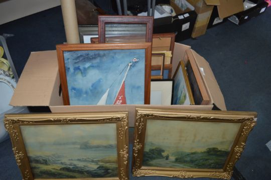 Box Containing Framed Prints and Watercolours, etc.