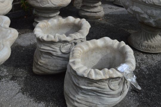 Pair of Reconstituted Limestone Planters in the Form of Sacks