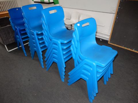 *Sixteen Stackable Blue Plastic Chairs