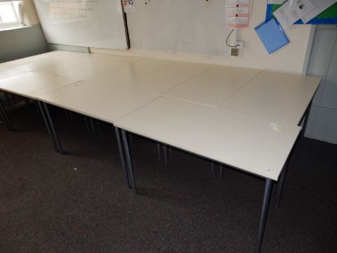 *Twelve School Desk with Cream Tops and Silver Frames