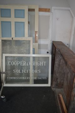 *Assorted Pine Panelled Doors, Frame Glass Printed Panels and Open Fronted Pine Bookcase