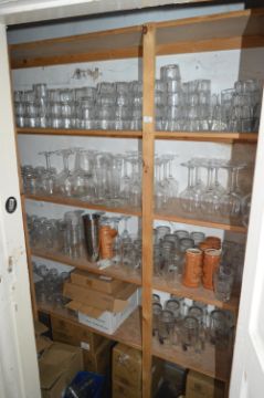 *Contents of Cupboard Including Large Quantity of Glass Ware, Consisting of Wine Glasses, Branded Half & Pint Glasses, Tumblers, Coca Cola Glasses & Others