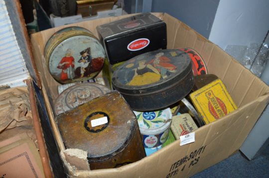 Box Containing a Large Collection of Vintage Tins, Biscuit Tins, Tobacco Tin, etc.