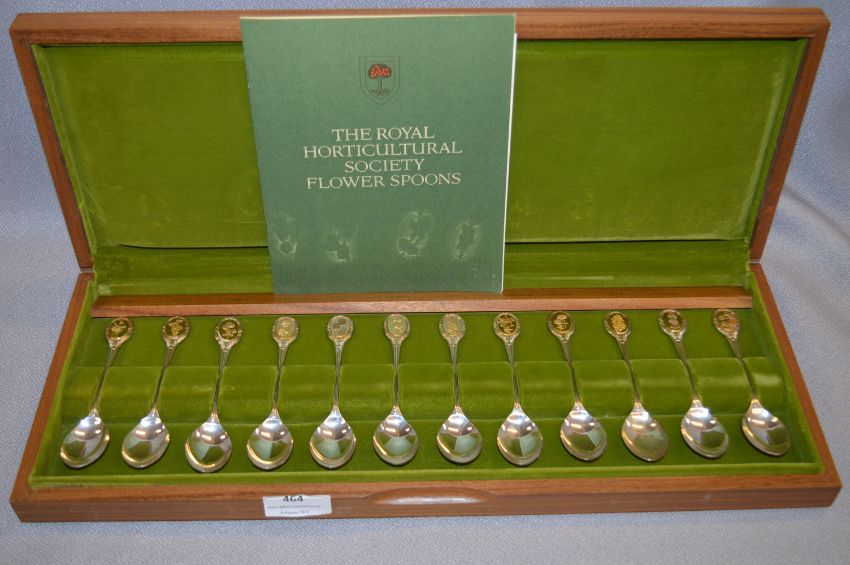 Set of Twelve The Royal Horticultural Society Flower Spoons with Gold Panels - Approx 306g