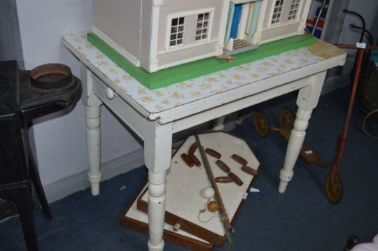 Victorian Painted Pine Table with Single Drawer