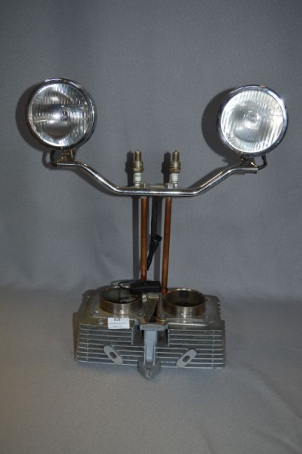 Motorcycle Engine Block and Headlight Upcycled Table Lamp