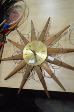 Teak Sunburst Wall Clock