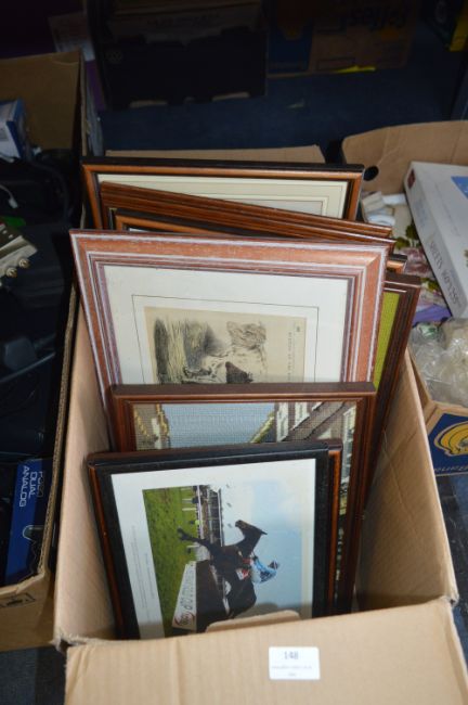 Box Containing Framed Prints and Woolwork Pictures