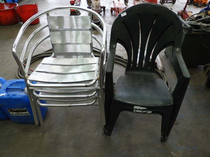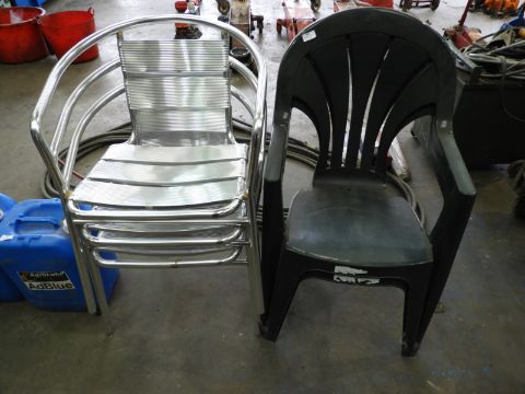 *Two Plastic and Three Aluminium Stackable Chairs