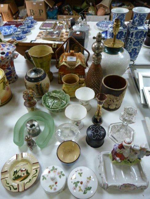 Assorted Pottery Including Wedgwood and a Table Lamp