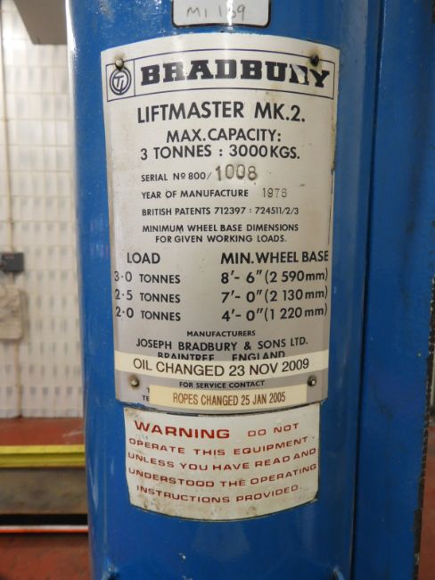 *Bradbury Four Post Lift with Wheel Free & Jacking Beam