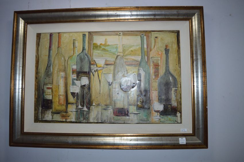 Large Framed Oil on Board - Wine Bottles by Shana