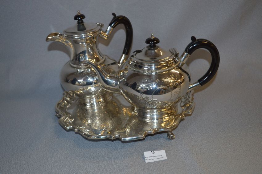 Silver Plated Three Piece Tea, Coffee and Tray Set