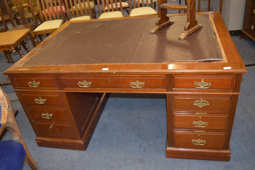 Mahogany Twin Pedestal Partners Desk with Brass Handles
