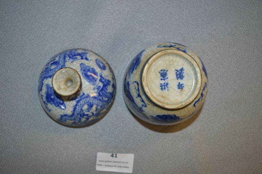 Chinese Blue Dragon Patterned Lidded Pot with Bronze Rims