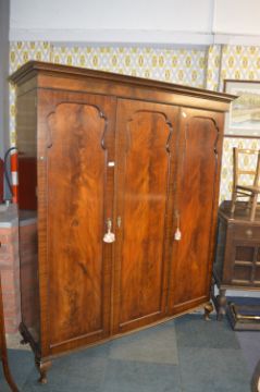 Mahogany Veneered Triple Wardrobe with Fitted Interior