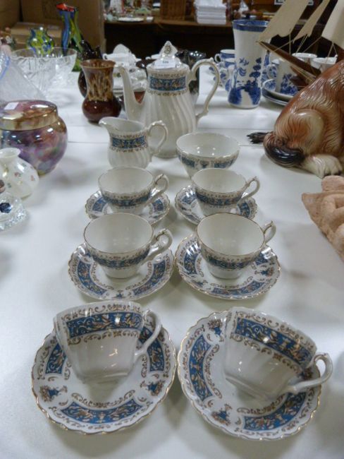 Myott Blue & Gilt Patterned Fifteen Piece Tea Set