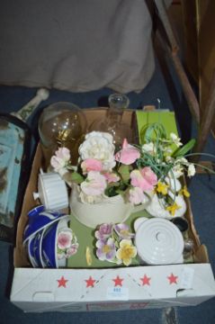 Box Containing Anniversary Clock, Artificial Flowers, Condiments Set, etc.